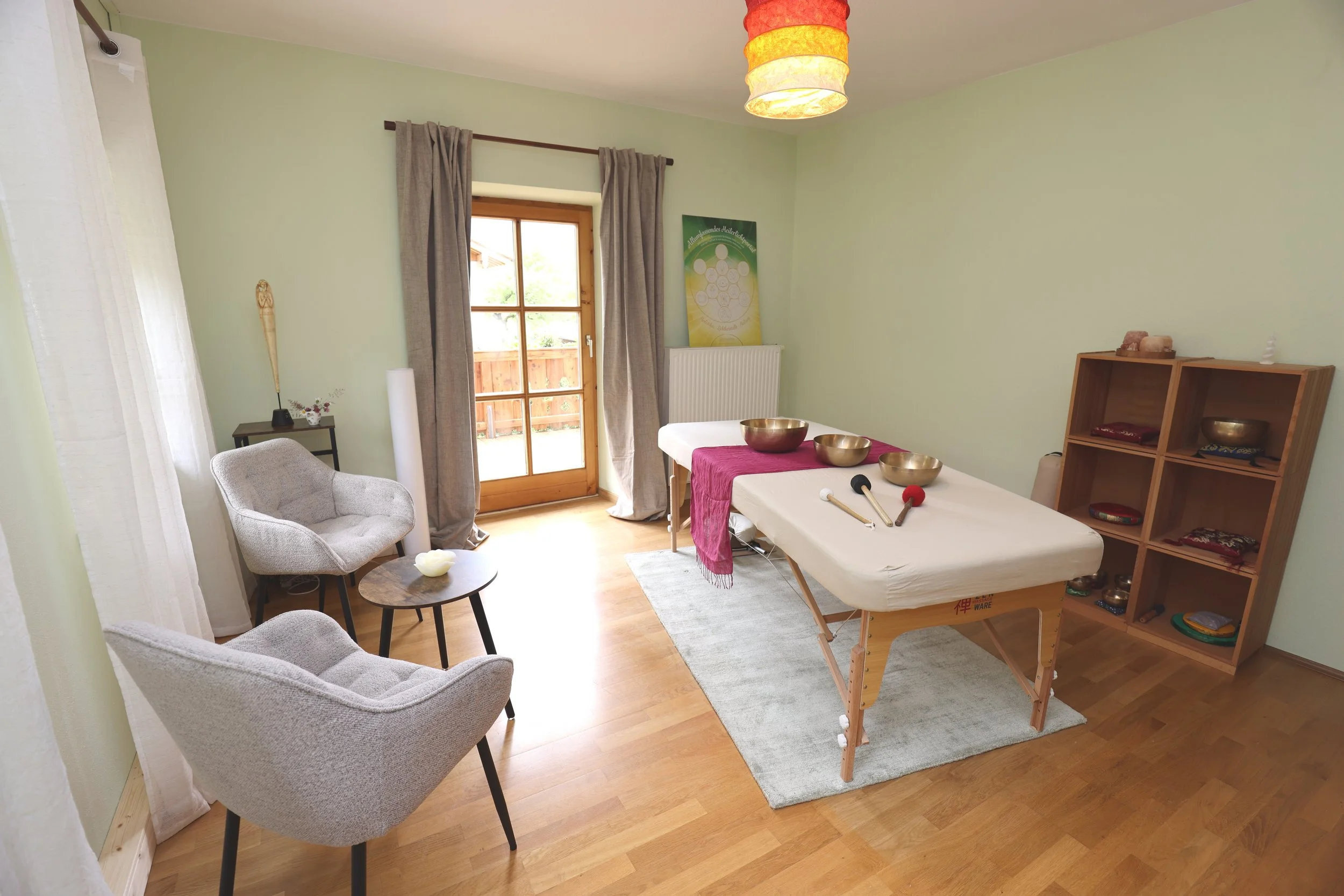 Ein geschützter Raum für Klangreisen, energetische Arbeit und feinsinnige Therapien. Sanfte Akustik, natürliche Materialien und ein wohliges Ambiente laden dazu ein, sich dem Klang hinzugeben und tief zu entspannen. Perfekt für Klangschalentherapie, PranaVita, Reiki, energetische Behandlungen oder Einzelsitzungen.