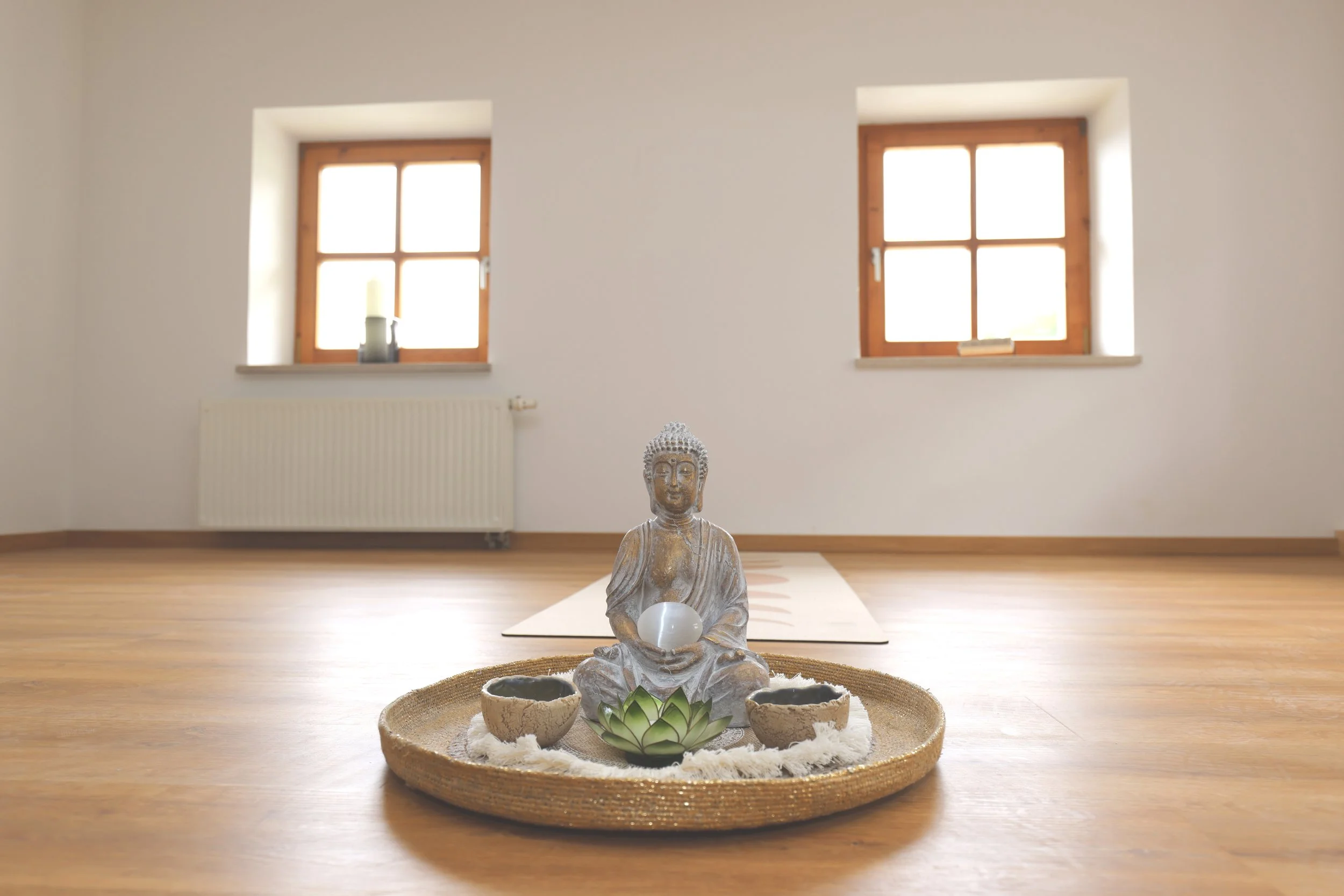 Ein lichtdurchfluteter, ruhiger Raum – ideal für Meditation, Achtsamkeitspraxis, Yoga oder stille Gruppenarbeit. Die klare Atmosphäre schafft einen Ort der inneren Einkehr und Konzentration. Hier findest du Raum für Klarheit, Präsenz und Verbundenheit.